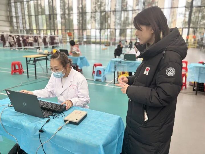 接种当日,学院体育馆被精心布置为临时接种点。现场科学划分为健康问询区、信息登记区、疫苗接种区、留观区等,各区域标识清晰,指引明确。同学们在工作人员引导下有序排队等候。