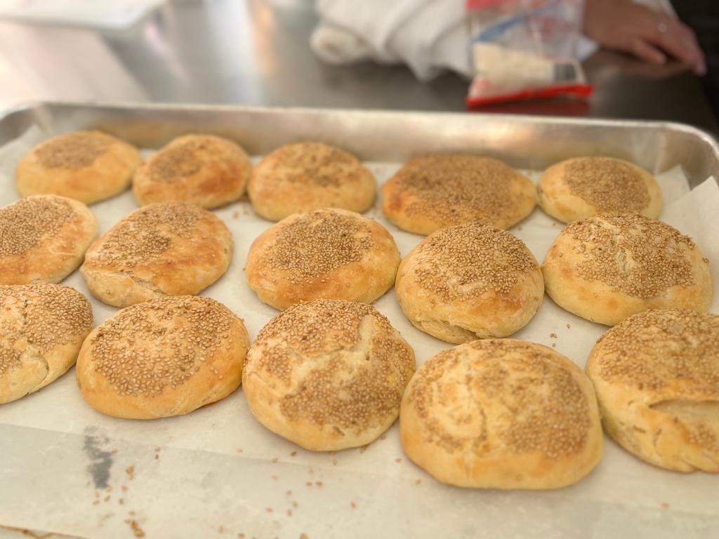 本次活动创新教学模式,将课堂直接搬进高标准食品安全实验室,由拥有丰富面点制作经验的食堂师傅担任实践教师。面点师傅,从和面、揉捏、包馅到撒芝麻、烘烤,为学生们完整演示了传统芝麻烧饼的制作流程。师傅手法娴熟,讲解细致,不仅传授技艺,更分享了关于火候掌控、口感调配的独家心得。学生们在师傅的“手把手”指导下,亲手完成了一系列操作。