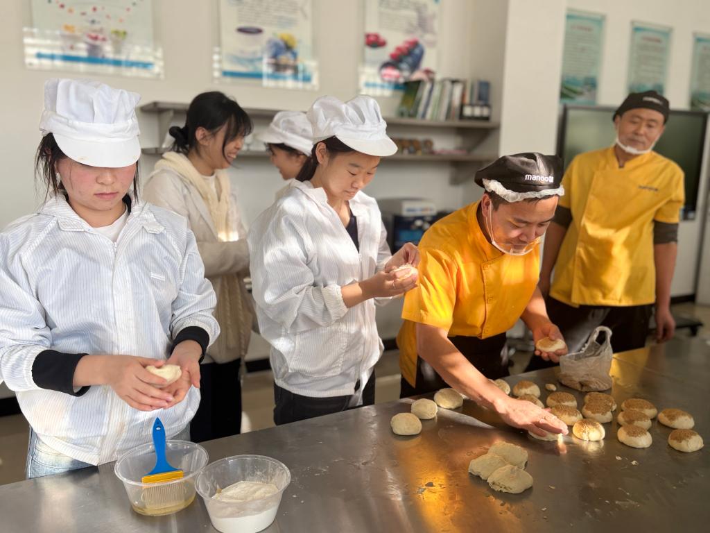 一盘盘金黄酥脆、香气四溢的芝麻烧饼新鲜出炉,一群身着洁白工作服的学生正围着师傅专注聆听。这并非普通的食堂后厨,而是化工与环境学院的食品安全实践教室。近日,一场题为“传统面点制作”的特别实践课在这里生动上演,标志着由学院基建后勤部与化工与环境学院联合举办的“食品安全与生产实践”系列活动正式拉开帷幕。