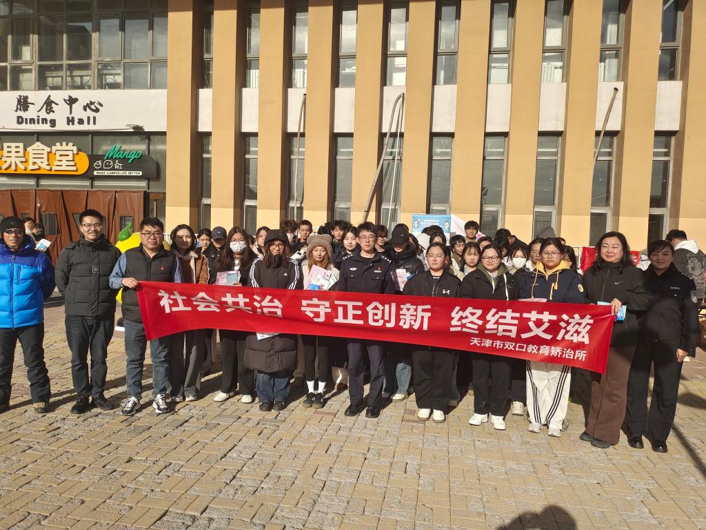 12月1日,在第38个“世界艾滋病日”来临之际,学院联合天津市双口教育矫治所、北辰区疾病预防控制中心、西堤头社区服务中心等多部门,在学院食堂门前举办了一场以“社会共治 守正创新 终结艾滋”为主题的大型防艾宣传教育活动。活动通过现场宣讲、资料发放、互动交流等形式,面向全院师生普及艾滋病防治知识。